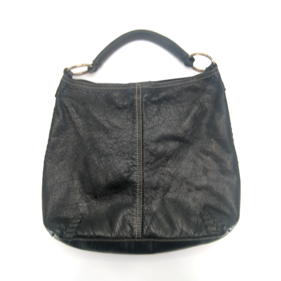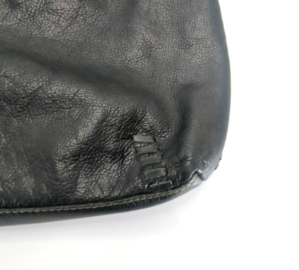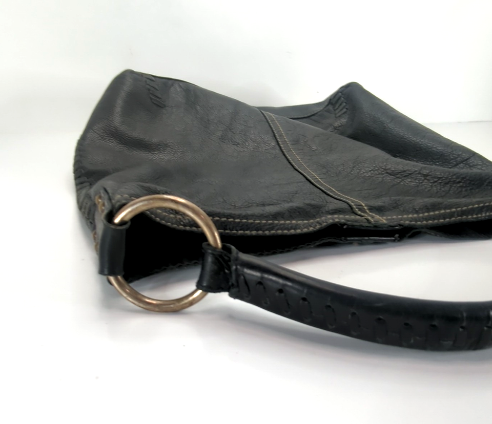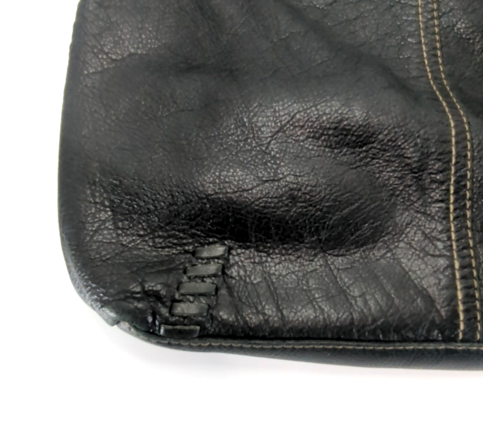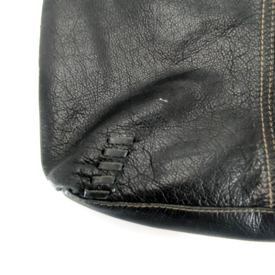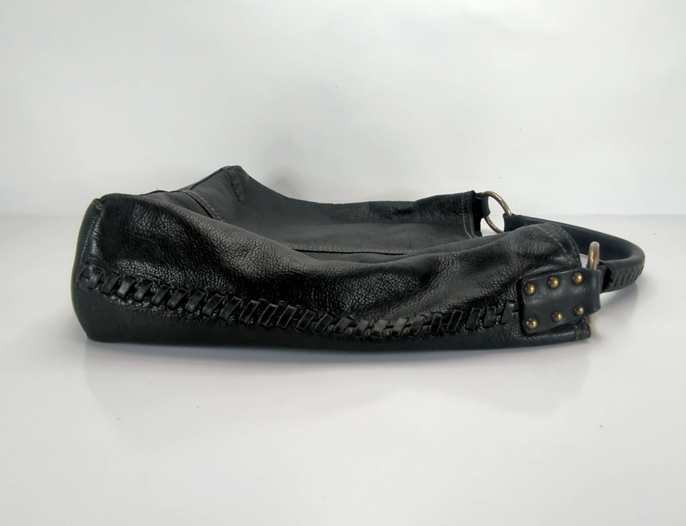 Lucky Brand Large Black Leather Hobo Shoulder Bag Whipstitch Purse 13"H Used