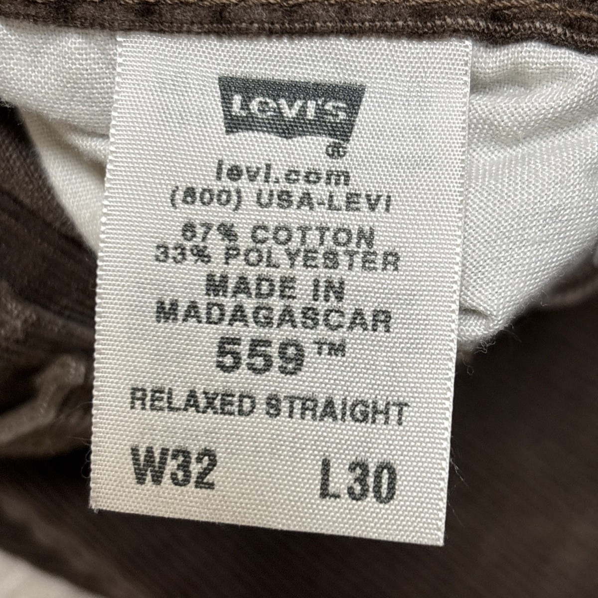 Levis 559 Corduroy Pants Mens 32x30 Brown Relaxed Straight Fit Casual Trousers