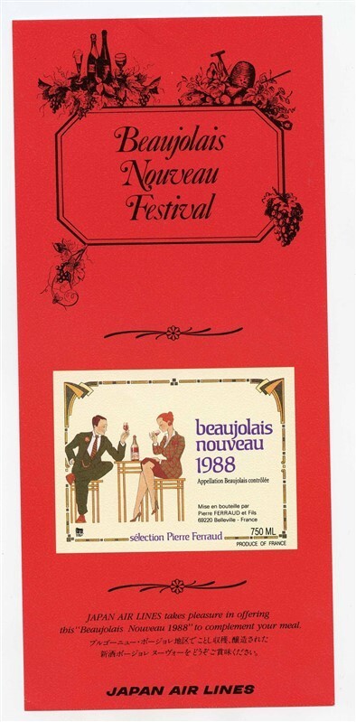 Japan Airlines Illustrated Wine List JAL 1980's Beaujolais Nouveau Festival