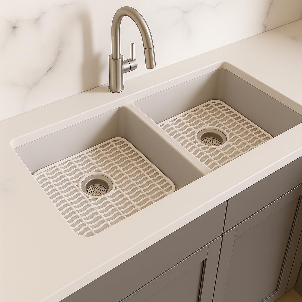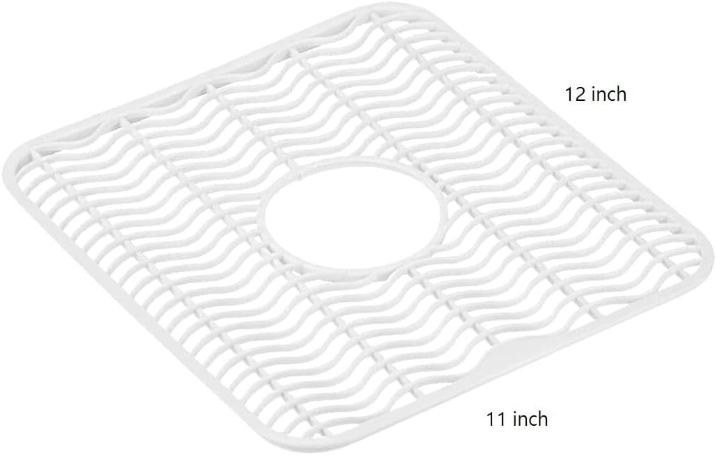 Sink Protector Mat 2 Pack 12x11 Center Drain Cutout Raised Feet Off White