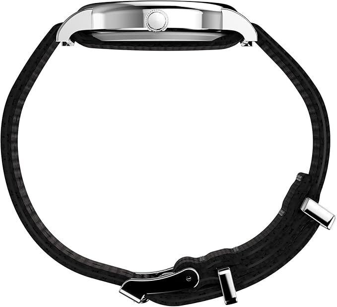 Comfort Fit: Adjustable black 20mm nylon slip-thru strap fits wrists up to 8 inches for versatile, all-day wear