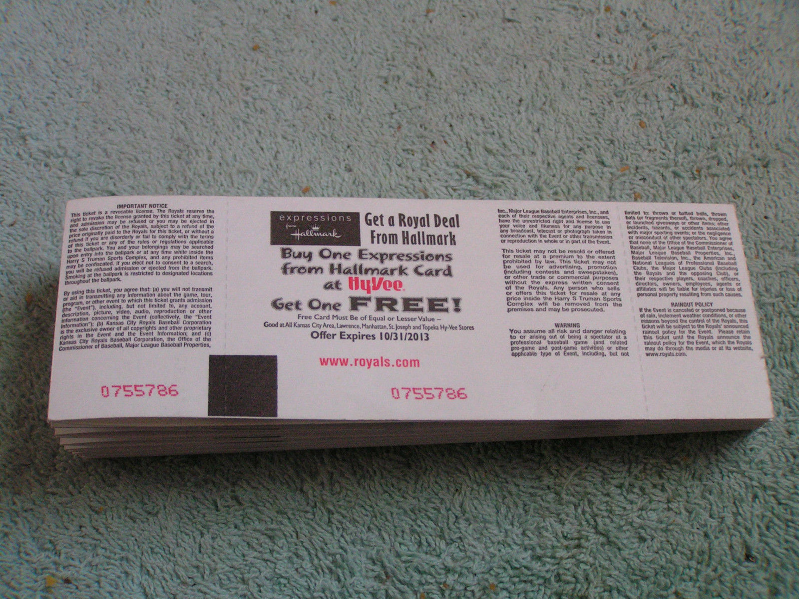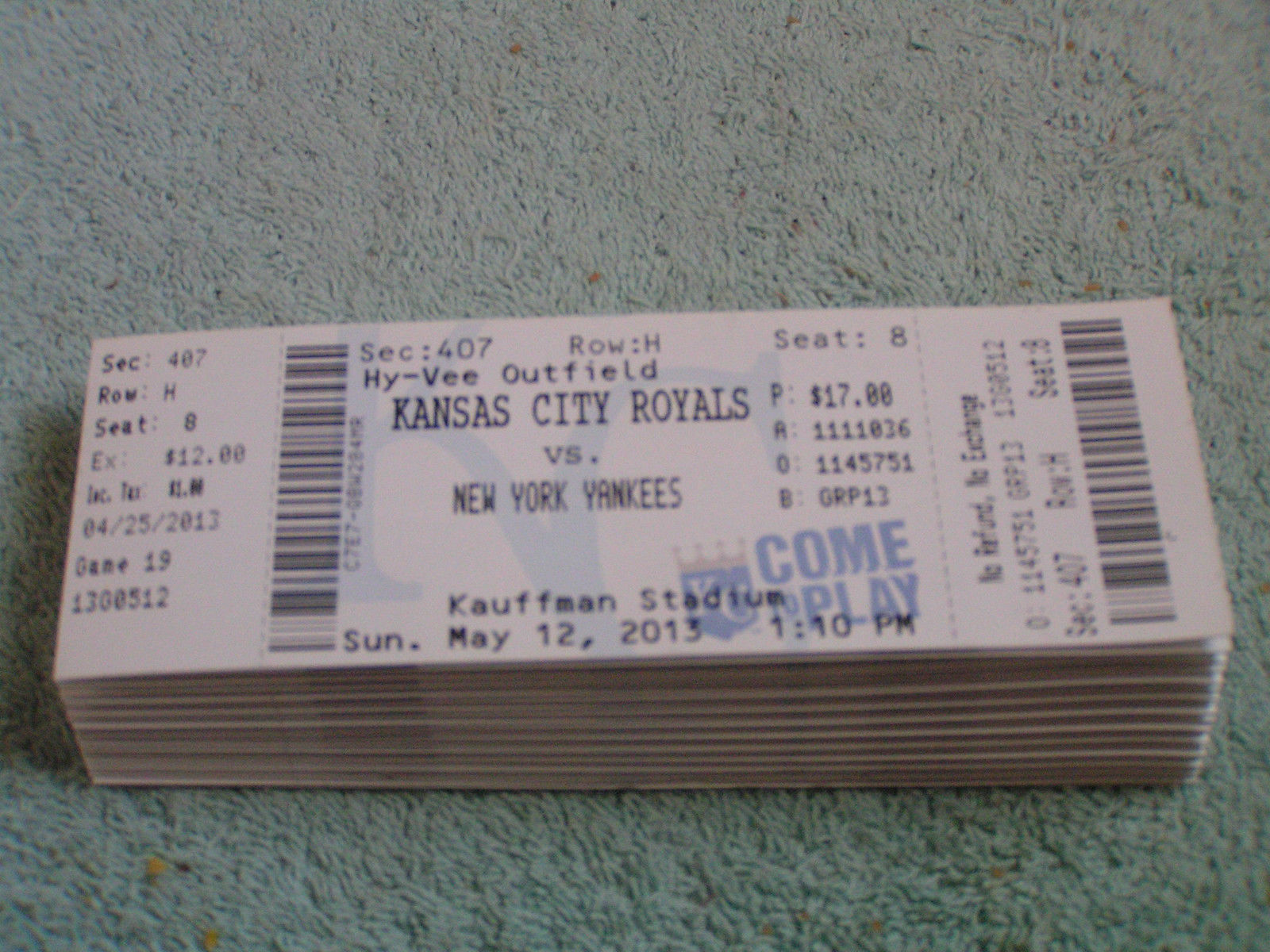 MLB New York Yankees Vs. Kansas City Royals 5-12-13 At Kaufman Stadium 1 Ticket