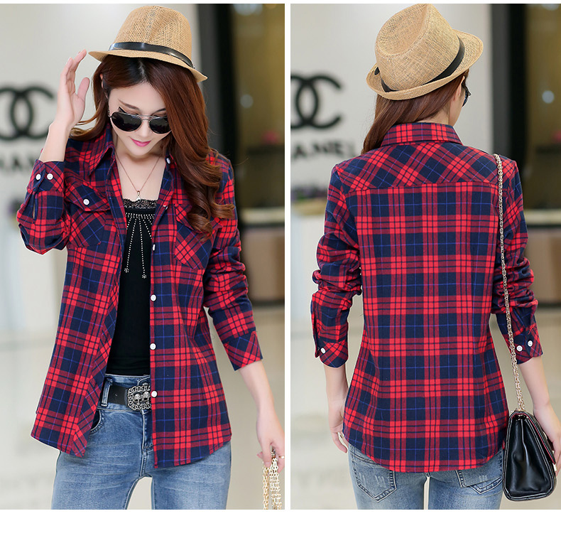 2019 Fashion Plaid Shirt Female College style Long Sleeve Flannel Shirts