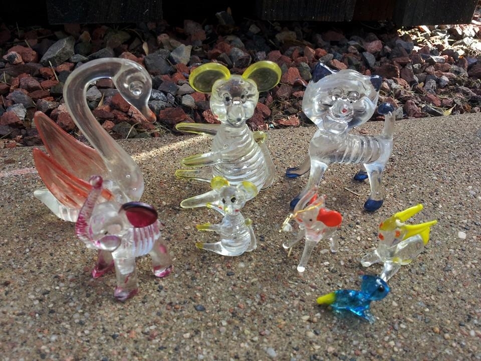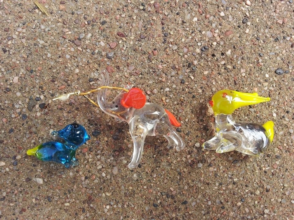3 Blown Glass type animals, Elephant, Rabbit and a Bird. Measures around 1 to 1 1/2" tall.