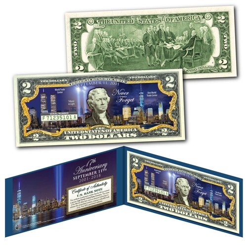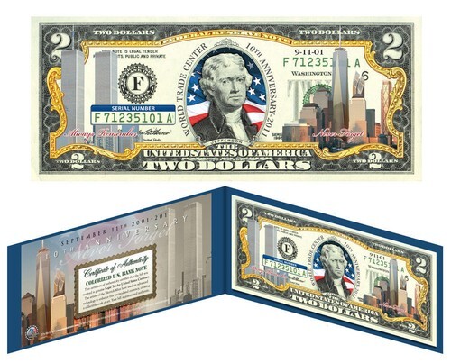 ONE WORLD OBSERVATORY Colorized $2 Bill U.S. Legal Tender WORLD TRADE CENTER WTC