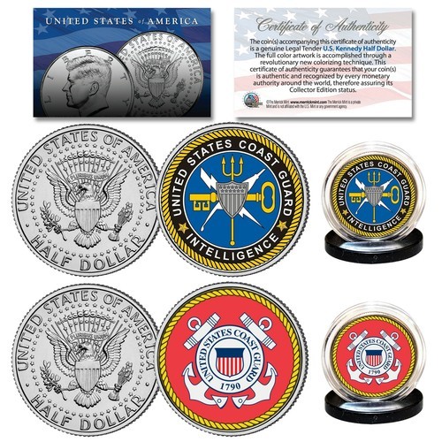 This is a great gift for your Dad to proudly display and makes a great Fathers Day gift! This 2-coin set includes a beautifully colorized ?BEST DAD? JFK Kennedy Half Dollar and a beautifully colorized official COAST GUARD Logo JFK Kennedy Half Dollar. Each coin comes in a premium coin capsule with a coin display stand. Included is a Certificate of Authenticity to guarantee that your coins are authentic and recognized by every monetary authority around the world, assuring its Collector Edition status. These Genuine Legal Tender United States coins have been colorized using a unique painstaking multi-color authentic process by the Merrick Mint. Colorizing coins involves the unique application of special inks directly to the surface of a coin that achieves a level of detail, color saturation, and durability that is #1 in the coin industry. The result is an everlasting colorized coin collectible of ultra-high quality. Celebrate Fathers day with these Unique Coins. Make Dad Proud!