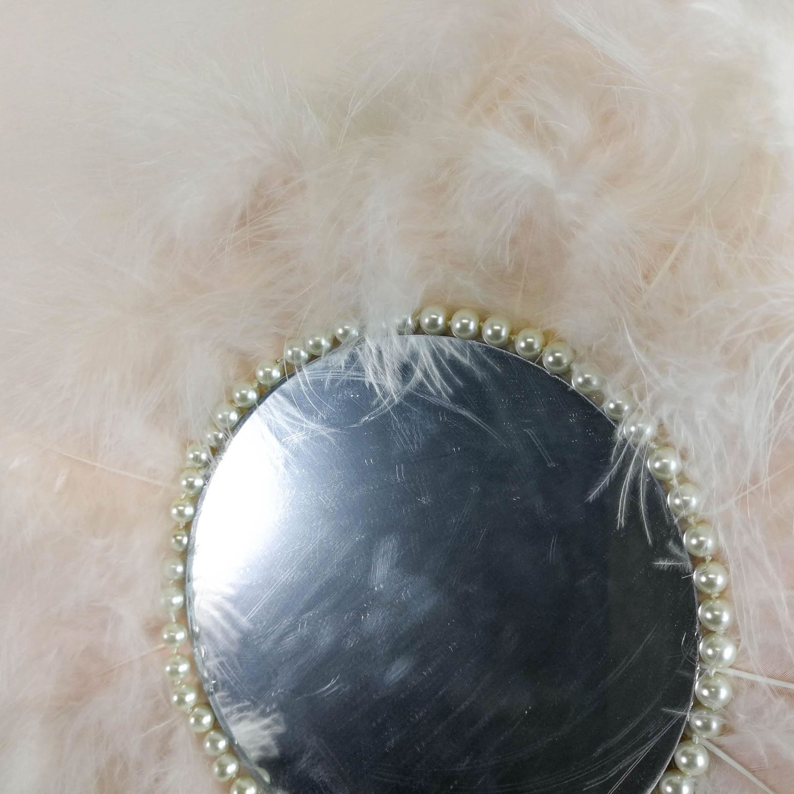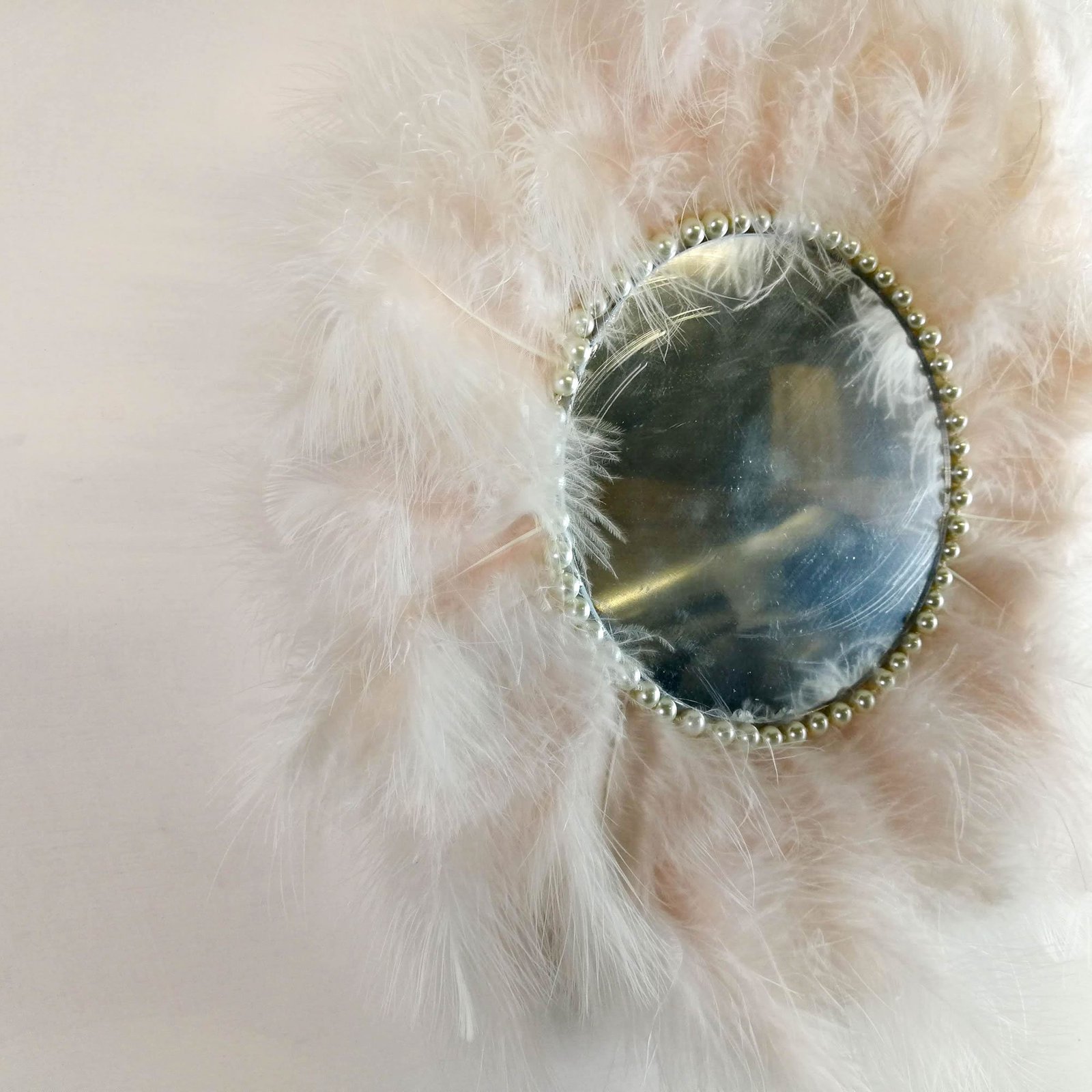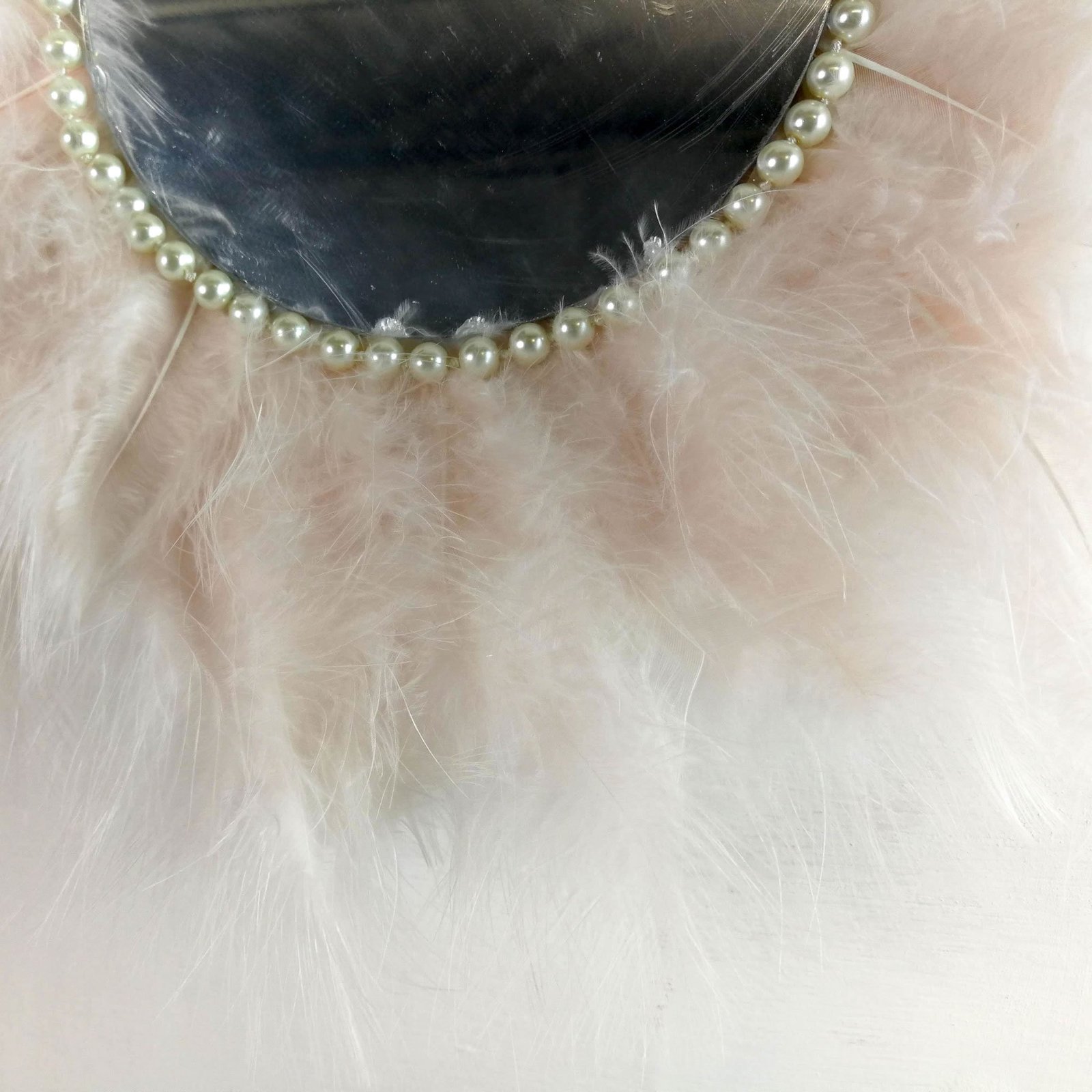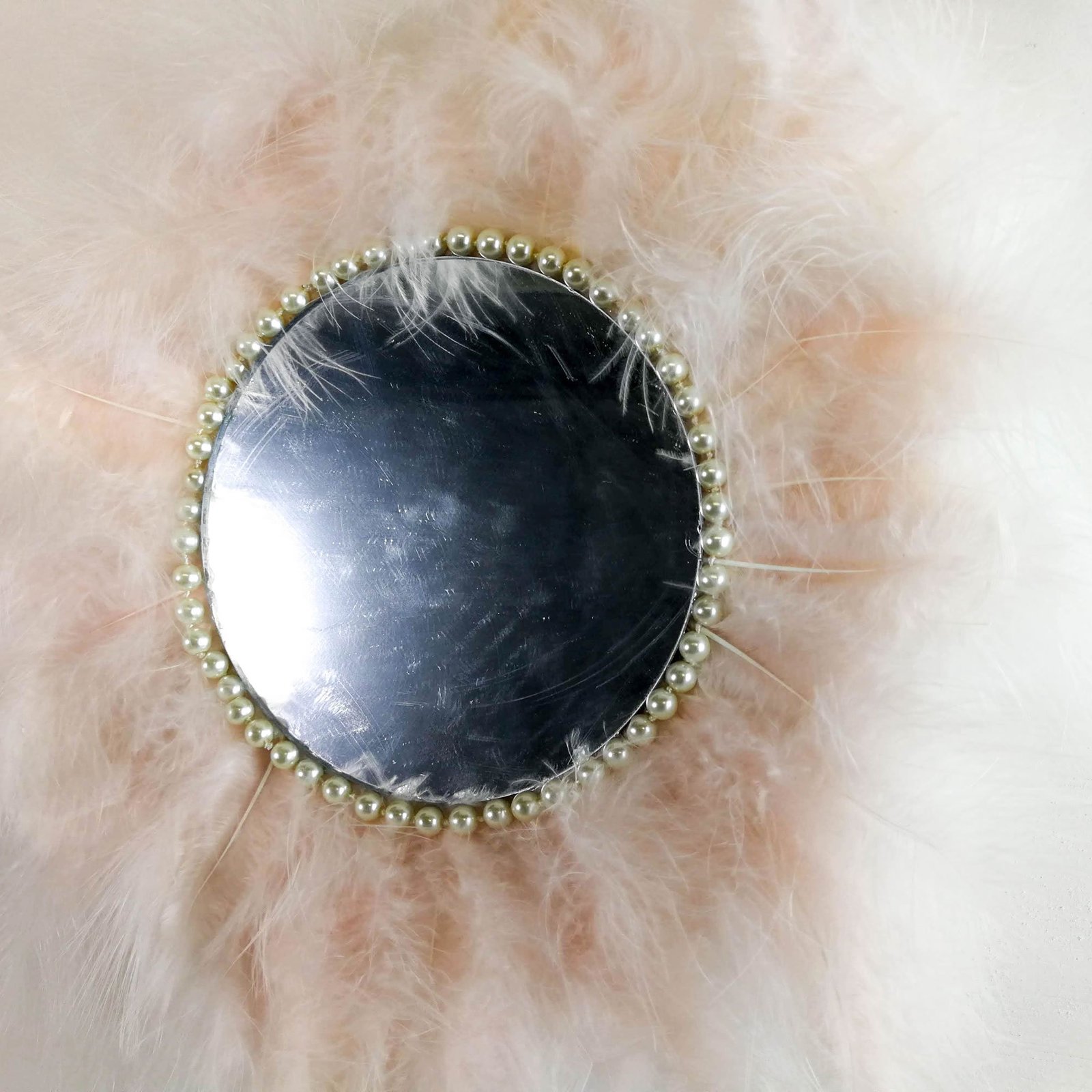 Beautiful handmade mirror covered around with soft feathers gives a true Juju African theme to the decor.
