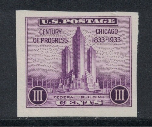 1933 1c Chicago, Imperforate Single Stamp issued without gum Scott 730a Mint NH