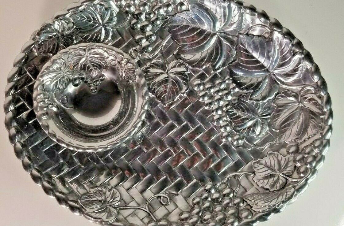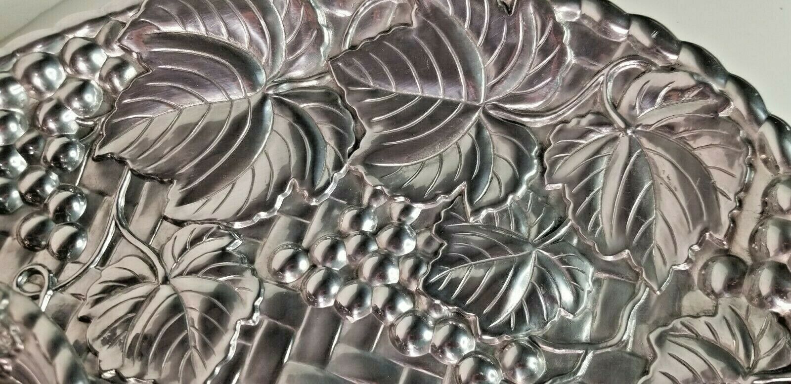 Lenox Metal Tray Platter Grape Vine Pewter LG 16" Serveware w/Matching Bowl