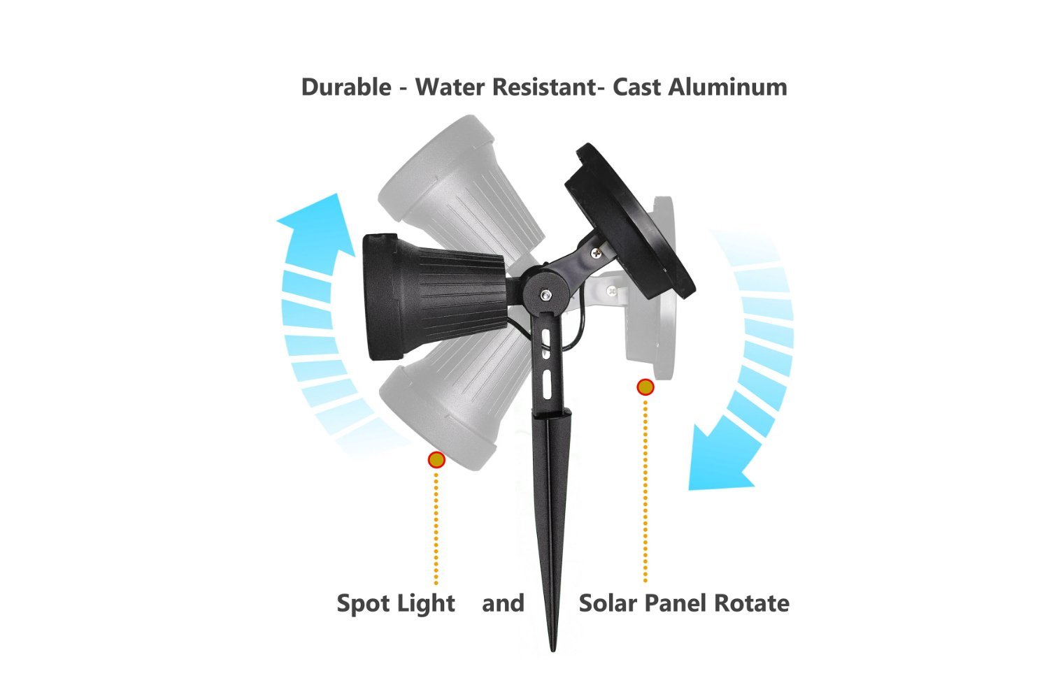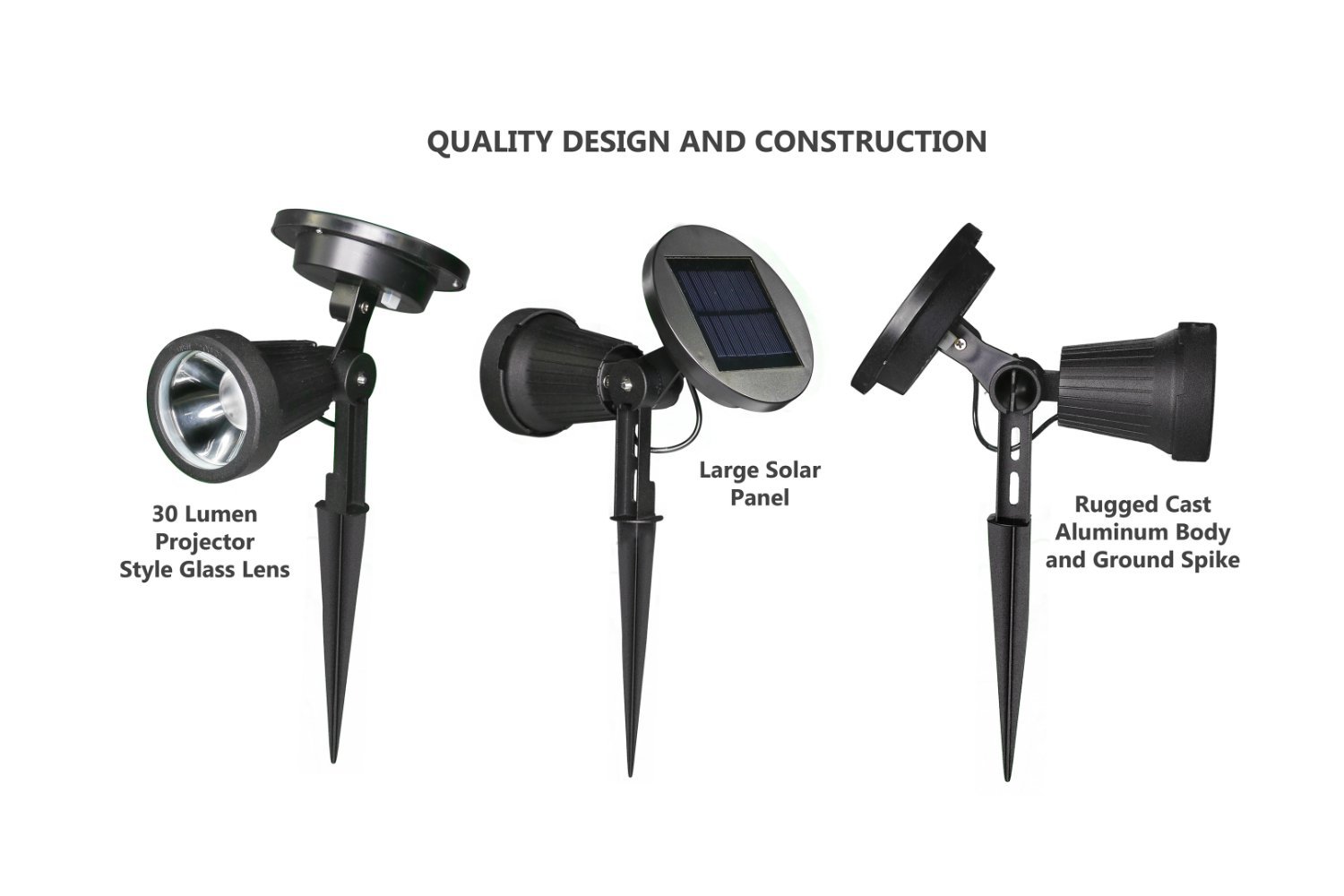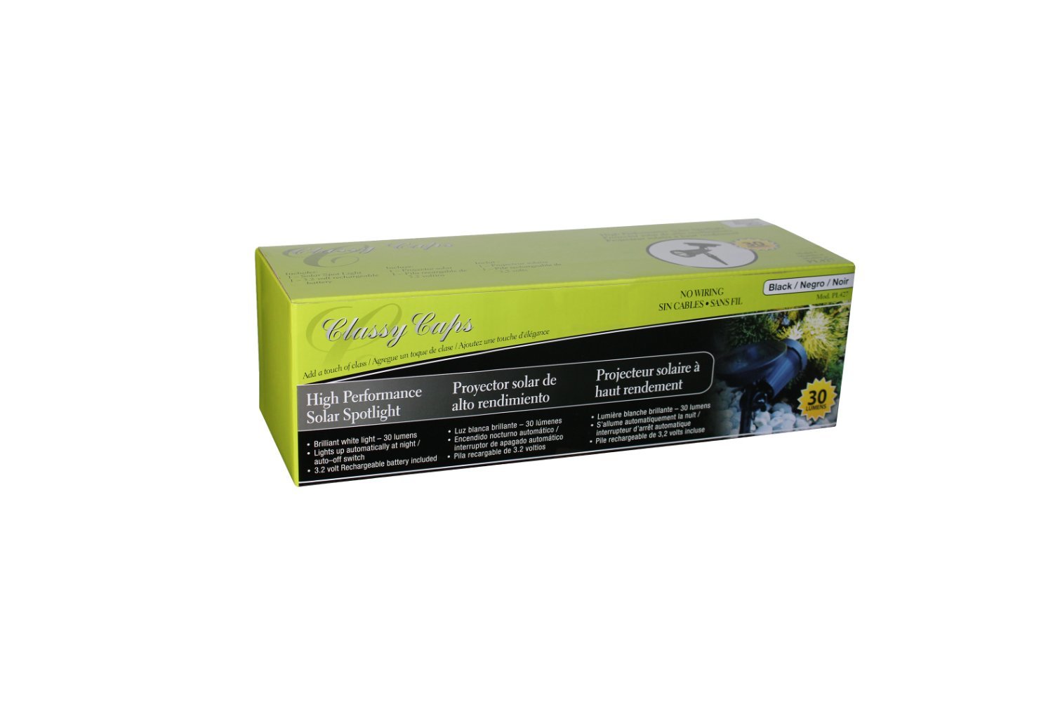 Add unique lighting accents to gardens, patios and walkways. Classy Caps high performance, durable cast aluminum solar spotlight casts a brilliant white light - 30 lumens. Installs easily in minutes. Auto - off switch.