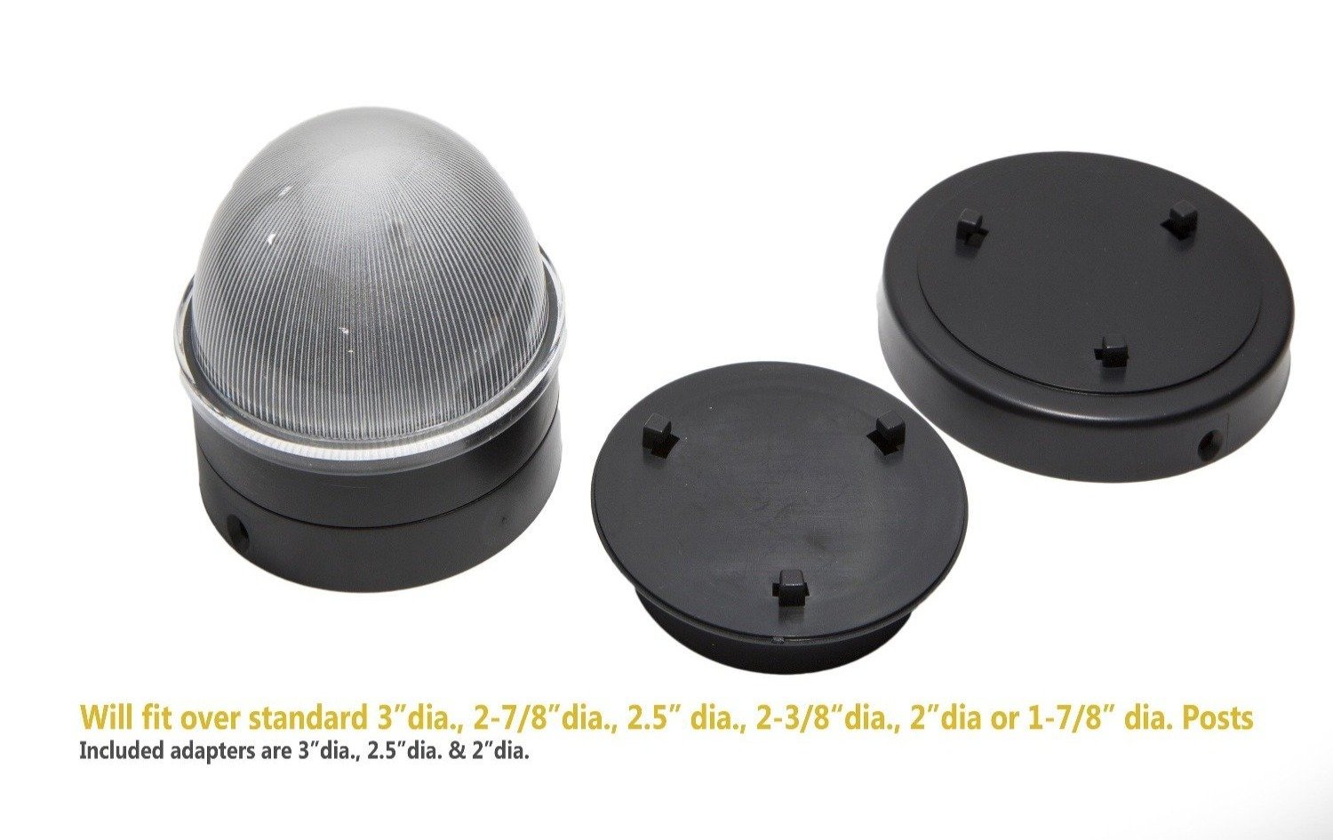 Adaptors included to fit over standard 3" dia., 2-7/8" dia., 2.5" dia., 2-3/8" dia., 2" or 1-7/8" dia. Posts