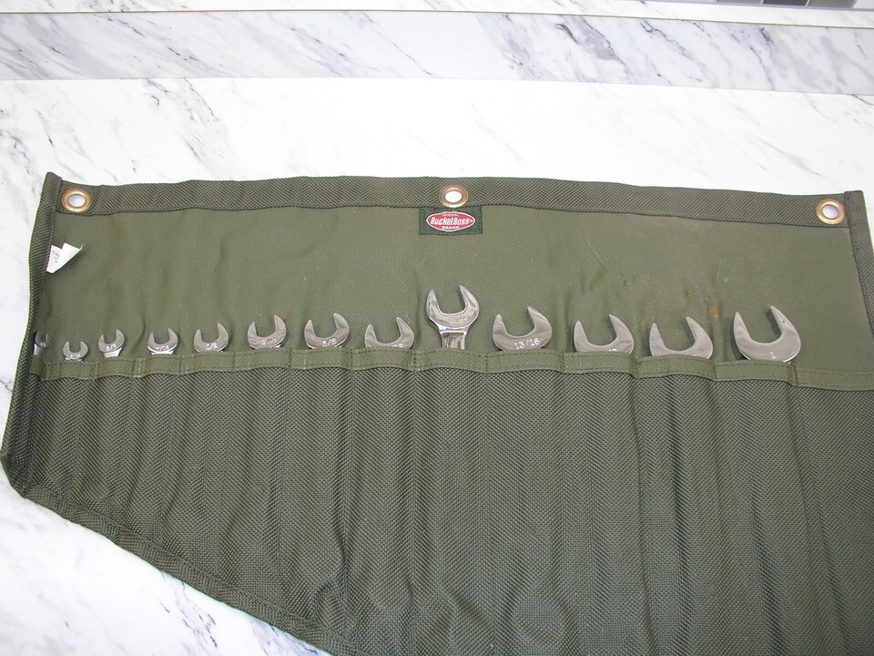 13 PC Craftsman Wrench set SAE In Bucket Boss Canvas Rap Bag. 1 Polished Husky