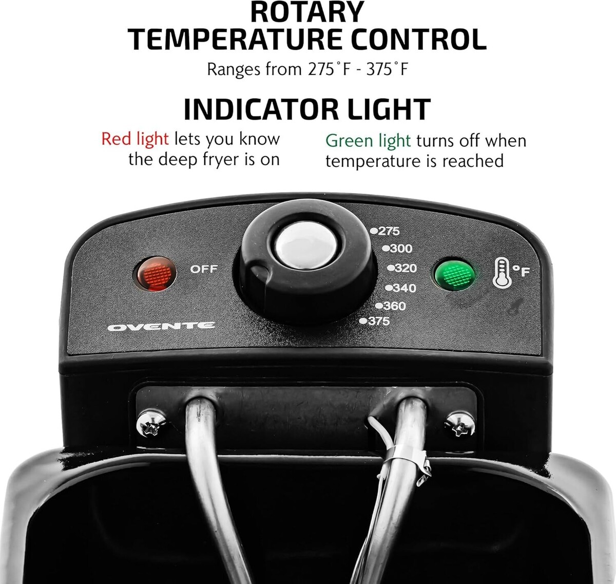 Adjustable Temperature Control: Range of 275F to 375F to fry a variety of foods, from French fries to doughnuts.