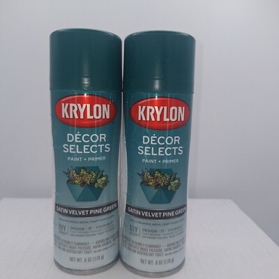 - 2 Krylon Decor Selects Paint & Primer Satin Velvet Pine Green 6 Oz Spray 6531