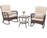 - 3 Piece Rocking Bistro Set with 2-Tier Coffee Table-Brown