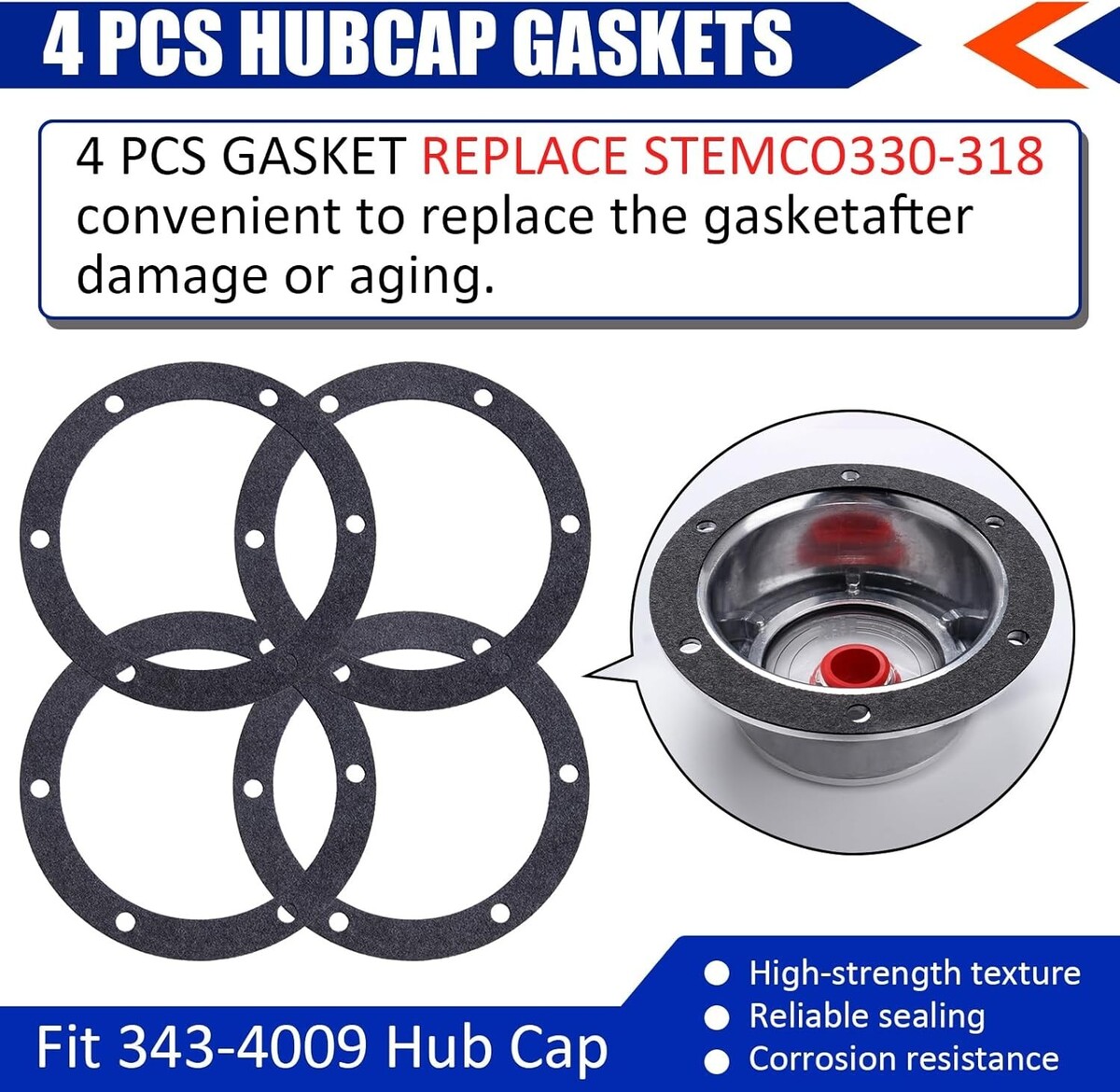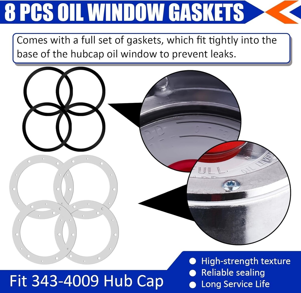 Plastic window covers and rubber plugs replace for Stemco 359-5990, hub cap gaskets replace for Stemco 330-3009. Hub cap window kit fit for Stemco 343-4009, 3434009, GMC/Volvo 921010009, 862500, etc. And compatible with Stemco/GMC/Volvo/Spicer-Dana/Strick/Timpte/Trailmobile semi truck hub caps