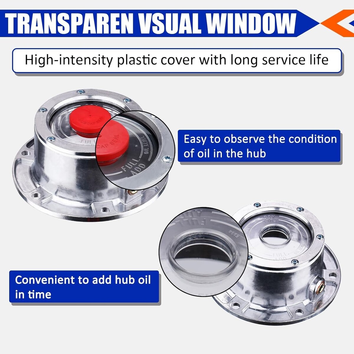 : We adopt high strength transparent plastic oil windows, that can visually see the condition of hub oil in the axle, convenient to add hub oil in time. And the oil windows are tight sealing with gaskets to prevent leakage