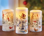 This set of 3 LED candles features a smiling snowman with red cardinals in a wonderful woodland setting. A beautiful way to add style to your home, the battery-operated candles have realistic flickering light without any open flames. These look beautiful in our Candle Holders sold in our store! Plus the more you buy, the more you SAVE!