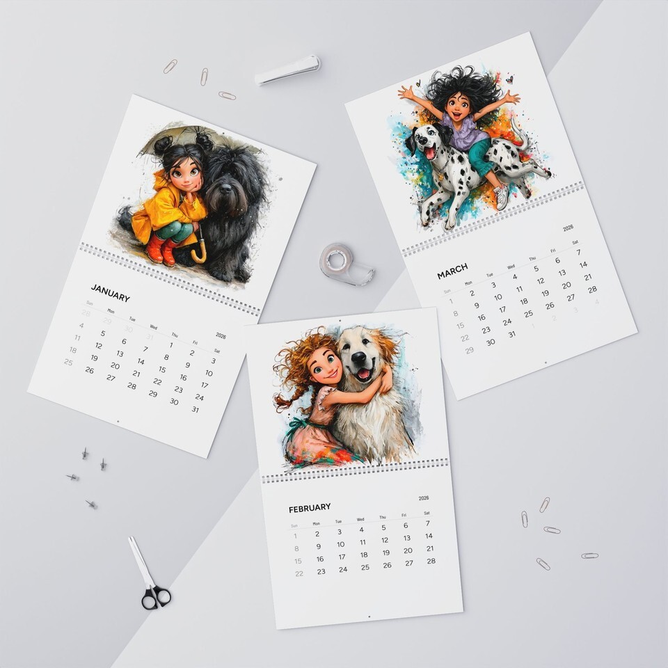 A Girl & Her Dog Wall Calendar 2026 | Illustrated Pet Art Calendar Dog Lovers