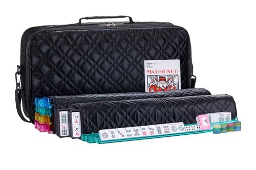 American Mahjong Set ?Black" - Quilted PU Leather Carrying Bag with Shoulder Strap Handles, All-in-One Tile Racks with Pushers, 166 Engraved Tiles, Dice, Bettor, Extra Tiles Instructions About This Item: American/Western Mahjong Set ? Perfect for both traditional and modern gameplay. Upgraded Black PU Leather Bag ? Features durable handles and an adjustable shoulder strap for versatile carrying options. The wide, single-zipper design allows easy access for quick packing and unpacking. Complete Set of 166 Engraved Tiles ? Includes all-in-one combination racks with pushers for seamless gameplay. Full Accessories Included ? 3 dice, bettor, extra blank tiles, and an instruction manual for easy learning. Premium Tile Quality ? Engraved and painted tiles, each measuring 1 1/8" x 7/8" x 1/2", ensuring long-lasting durability and clear designs. Product Description: Experience the perfect blend of style and functionality with this Full-Size American Mahjong Set. Designed to improve upon traditional mahjong bags, the Black Quilted PU Leather Carrying Bag offers both a sturdy handle and an adjustable shoulder strap for flexible carrying. The wide, single-zipper opening allows for effortless organization and quick access to your tiles and accessories. Set Includes: 166 Engraved White Tiles: o 36 Dots (1-9), 36 Bamboo (1-9), 36 Characters (1-9) o 16 Winds (East, West, North, South), 12 Dragons (Red, Green, White (soap)) o 8 Flowers (Autumn, Winter, Spring, Summer), 10 Jokers o 4 Spare Blank Tiles Accessories: o 4 Transparent Colored Racks with Matching Pushers o 3 Dice, Bettor, Extra Tiles, and Instruction Manual This set is perfect for both casual games and competitive play, making it an ideal gift for mahjong enthusiasts.