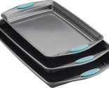 - Bakeware Nonstick Cookie Pan Set, 3-Piece, Gray with Agave Blue Grips