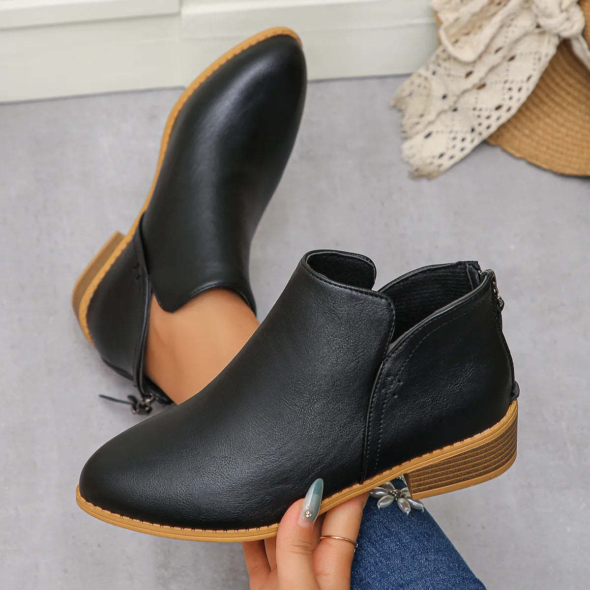 - Classic Block Heel Ankle Boots