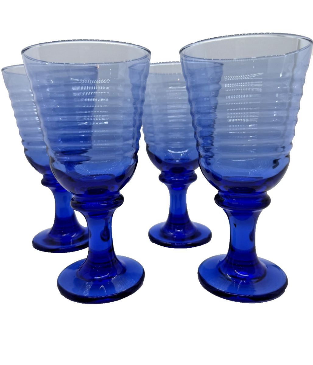 Vintage Libbey Cobalt Blue Ribbed Water Goblets ? Set of 4