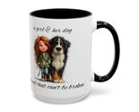 Warmth, companionship, and a little bit of mischief?this ceramic mug holds more than your favorite drink. A hand-illustration of a red-haired girl and her loyal dog wraps the side, the caption whispering about an unbreakable bond. The glossy white body contrasts with a colored interior and C-handle to give the design punch and everyday durability. It?s the kind of mug you reach for when mornings are slow, when afternoons need a moment of comfort, or when you want to celebrate the quiet friendship between a person and their pup.