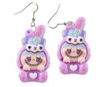 FUFU MONSTER ANIMAL COSTUME BODY with Toothy Smile DANGLE Funky EARRINGS 3D Front / Flat-Back RESIN Charm Novelty Jewelry - PURPLE LAVENDER BUNNY w/ HEART ANIMAL