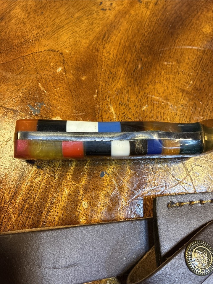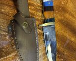 The S D Hunting Knife with a 5" stainless steel blade, featuring a straight edge and a multicolor handle. This fixed blade knife includes a sheath for easy carrying and is designed specifically for hunting purposes. Made in Pakistan, this knife weighs 15 ounces and is a durable and reliable tool for outdoor enthusiasts.
