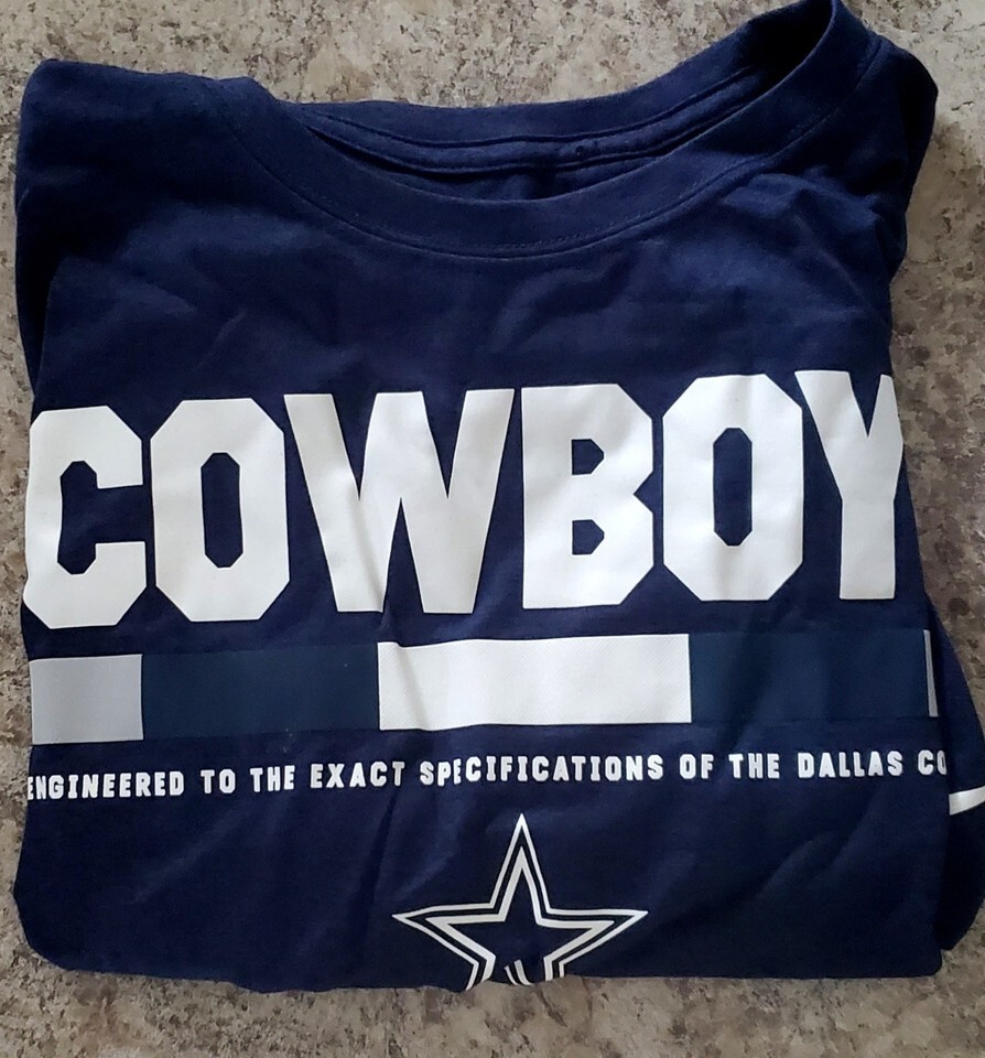 The Dallas Cowboys NFL Nike Men's Navy Sideline Shirt is hard to find and a fan apparel item featuring the name and logo.This officially licensed shirt, made by Nike, is in the team's signature blue color and designed for men in size L. Perfect for football enthusiasts and fans of the Dallas Cowboys, this shirt is a must-have for showing support during the regular season games.