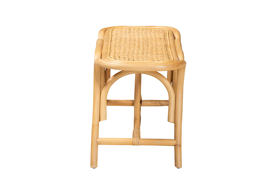Convey an air of carefree refinement in your space with the lovely Darcy accent bench. Handcrafted in Indonesia, this bohemian piece is entirely comprised of natural rattan. Its oval-shaped seat is tightly woven to provide a cozy embrace rich with exotic personality. The Darcy will arrive fully assembly and utilizes angled legs for excellent stability and support in expressive design. Adding a touch of rustic respite, the Darcy accent bench is a fantastic addition to any arrangement.