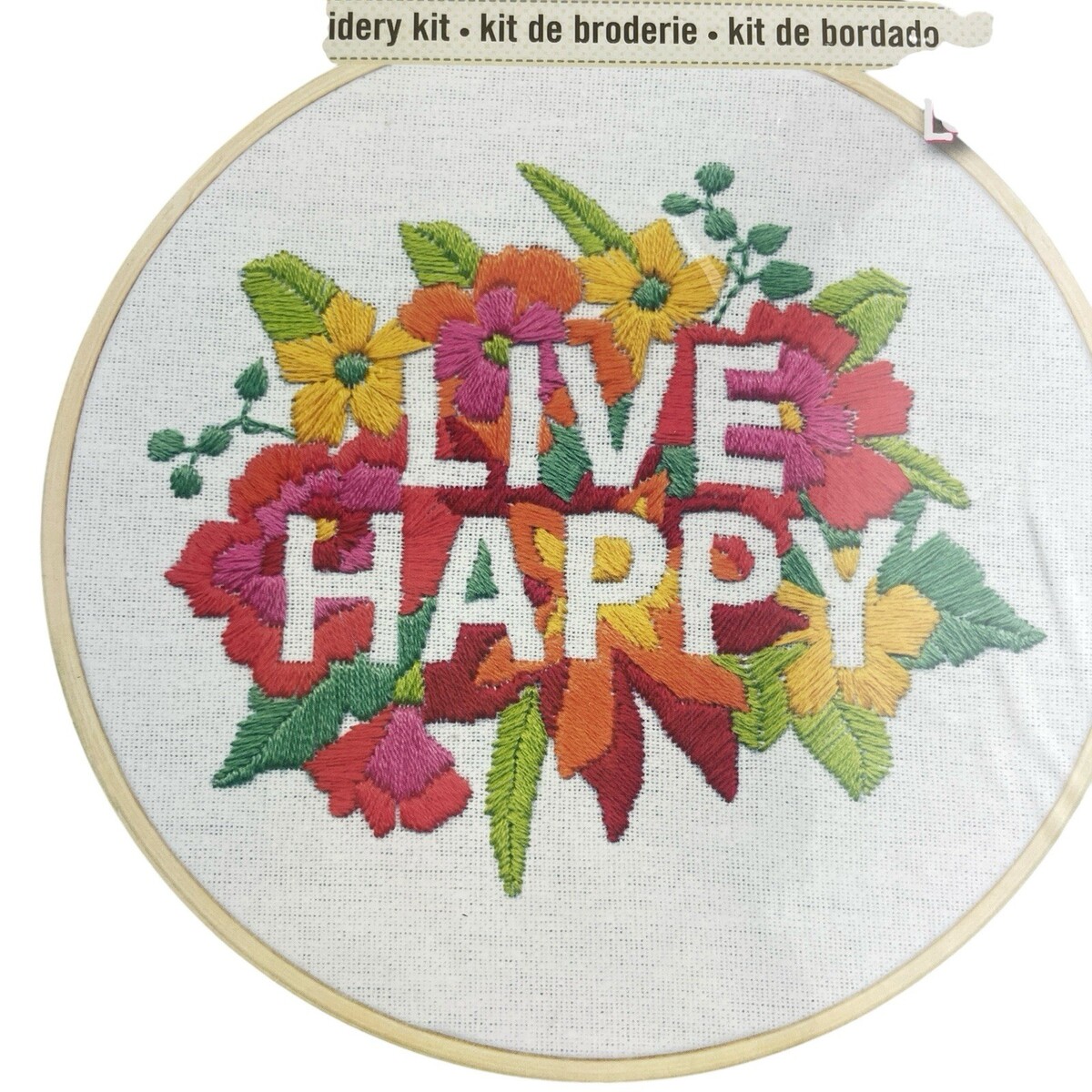 - Dimensions Embroidery LIVE HAPPY Needlepoint Embroidery Kit Flowers Floral Hoop