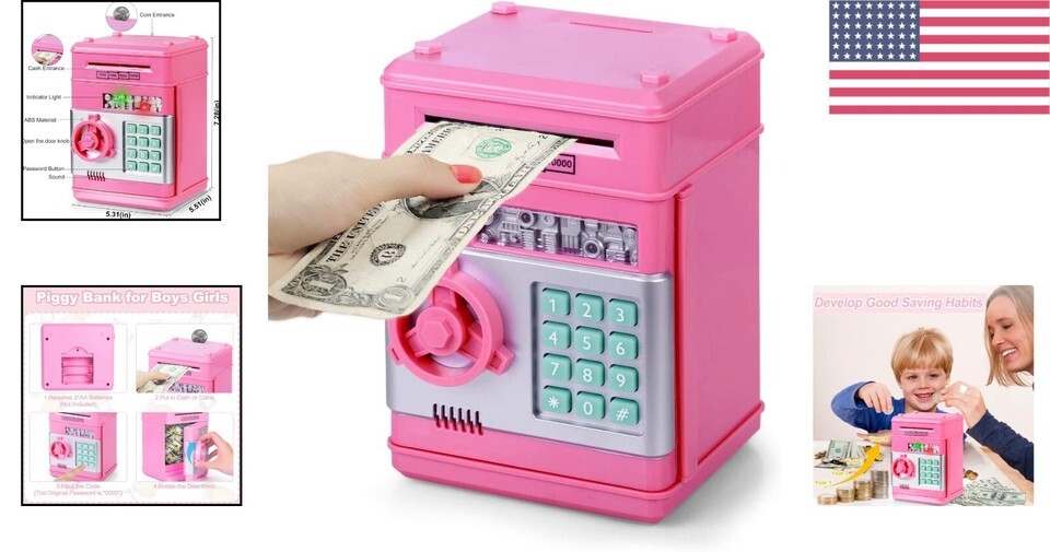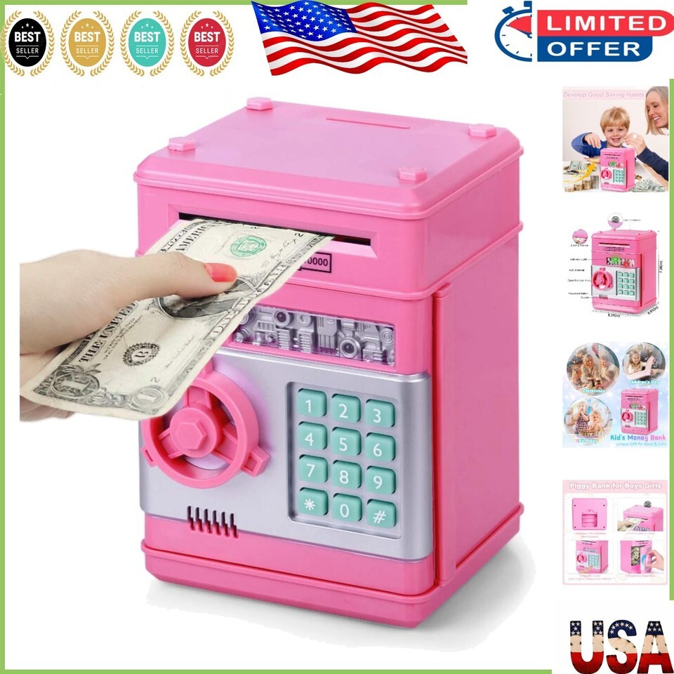 Durable Pink Kids ATM Piggy Bank - Encourage Saving with Password Protection