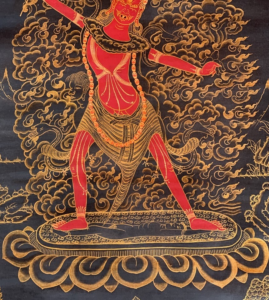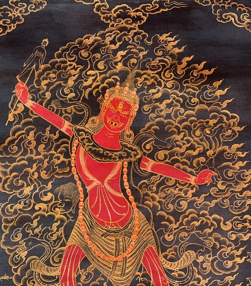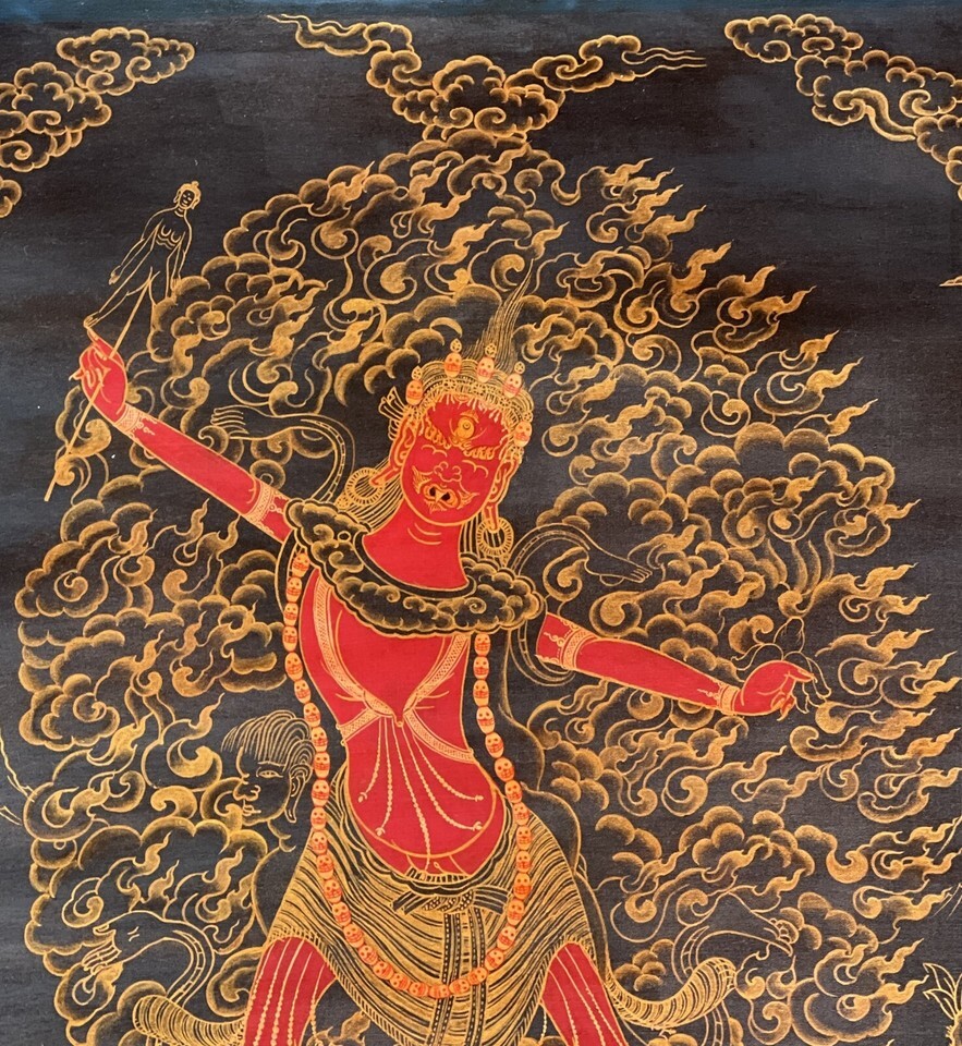 EKAJATI/EKAJATA/ OIL VARNISHED ORIGINAL BLACK AND GOLD TIBETAN THANGKA PAINTING