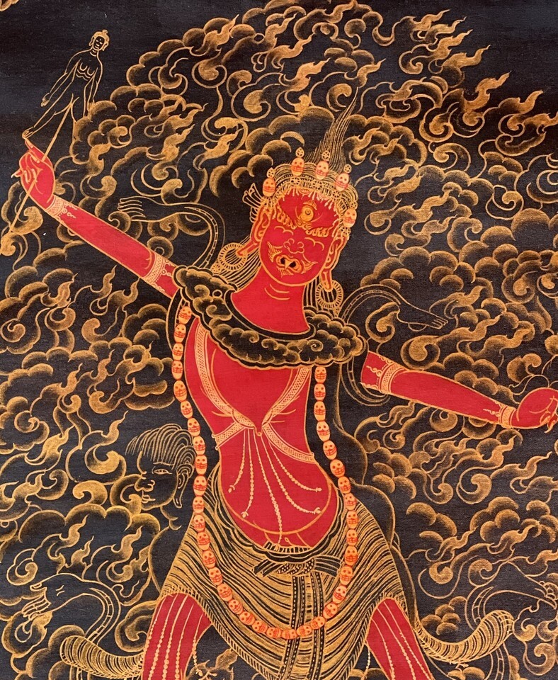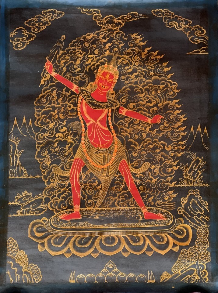 - EKAJATI/EKAJATA/ OIL VARNISHED ORIGINAL BLACK AND GOLD TIBETAN THANGKA PAINTING
