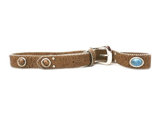 Elite of California Vintage Belt Brown Leather Stamped Western Stones M