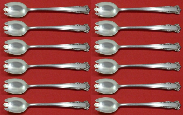 Sterling silver Ice Cream Dessert Fork Custom made 12-piece set, 6" in the pattern English Shell by Lunt. It is not monogrammed and is in excellent condition.