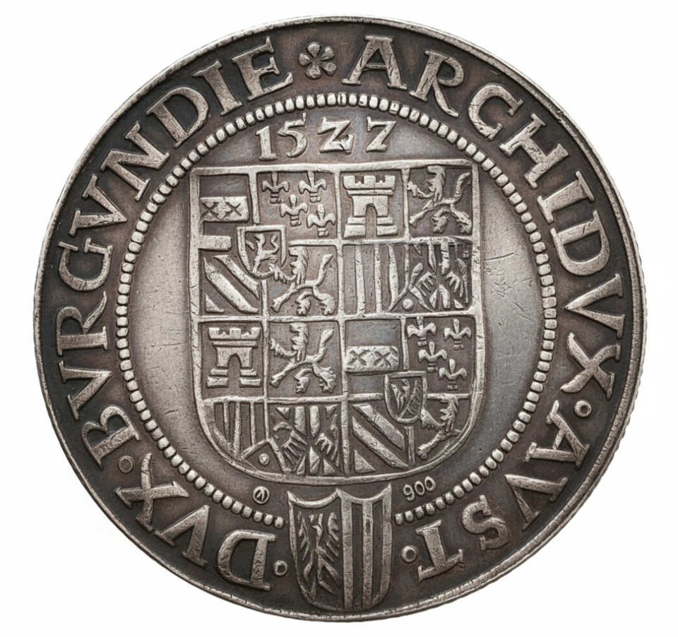 Discover this remarkable restrike art medal, featuring a detailed crowned bust of Ferdinand I, Archduke of Austria and later Holy Roman Emperor. The obverse prominently displays the year 1563, capturing the essence of the Habsburg monarchy's influence in European history. The reverse showcases an intricate coat of arms, with the historical reference 1527, reflecting the vast territories associated with Ferdinand I's reign as Duke of Burgundy. This finely crafted piece is not an original mintage but a superb commemorative restrike, designed to honor historical numismatic artistry. It serves as an excellent collector's item and a unique token for enthusiasts of historical medals. The proof-like quality and attention to detail make this a compelling art piece. A wonderful addition for any numismatic collection or a thoughtful gift for those fascinated by historical artifacts and European history. Keywords: restrike, collectible, medal, historical, commemorative, numismatic, collector's item, token, proof-like, art piece, imperial, Habsburg, antique style, fantasy medal.