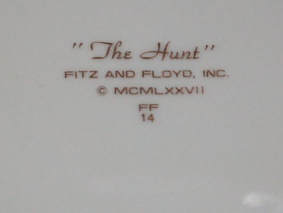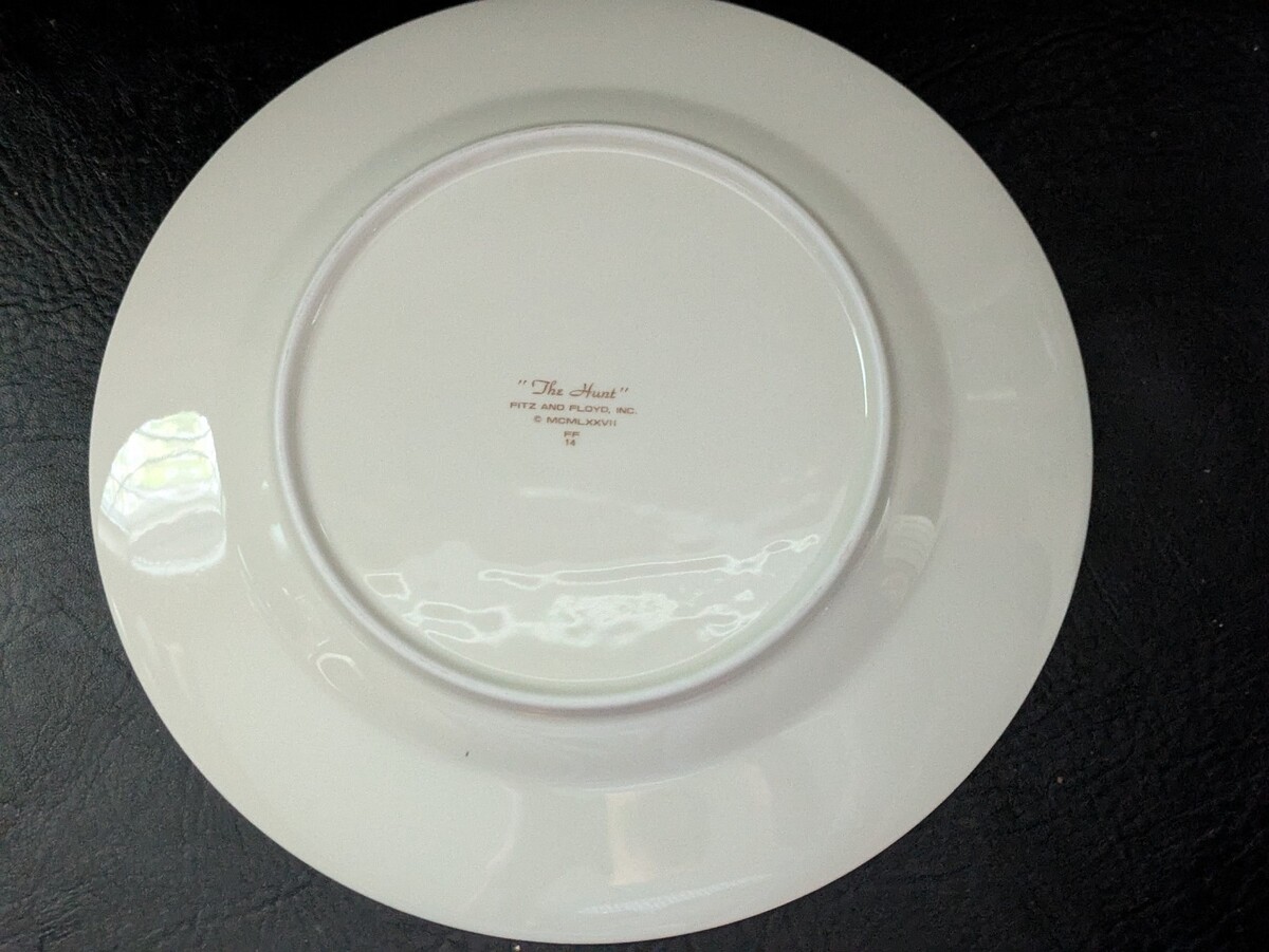 - Fitz & Floyd La Caza Plato Bordes Dorados Caballo Perros Valla FF14 10 1/4