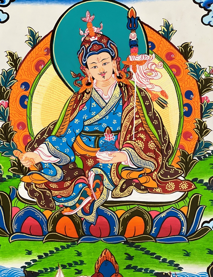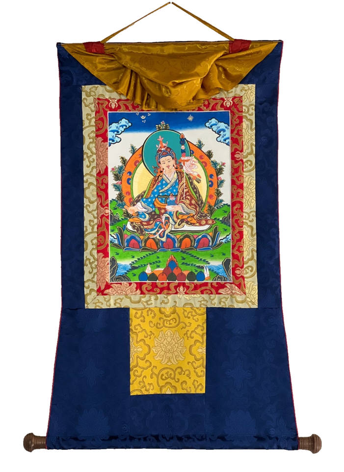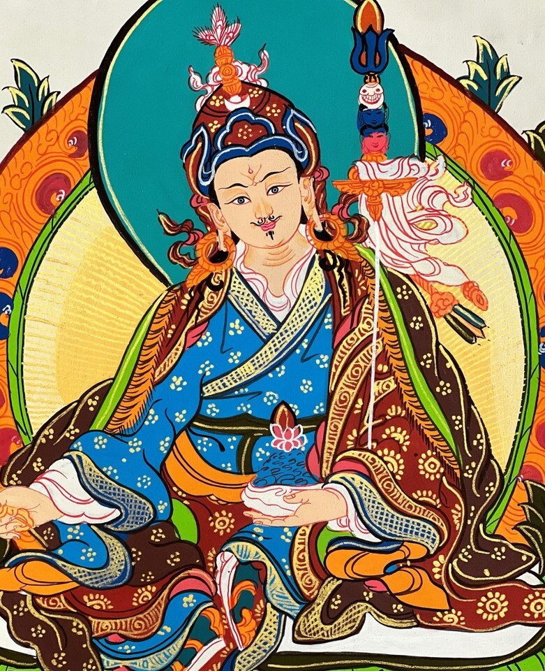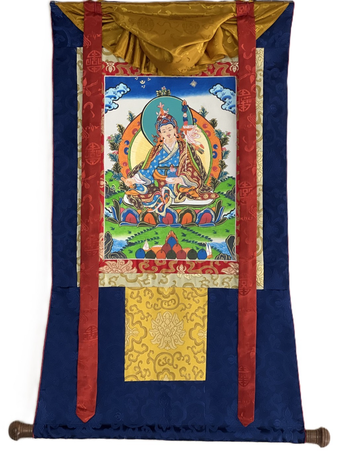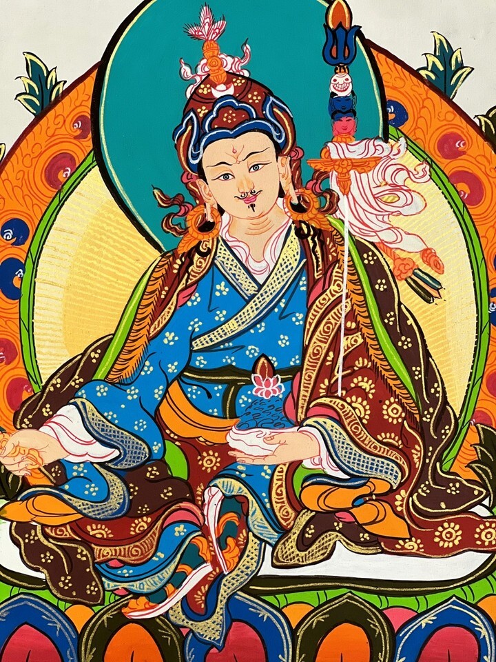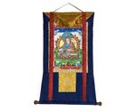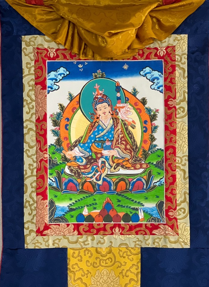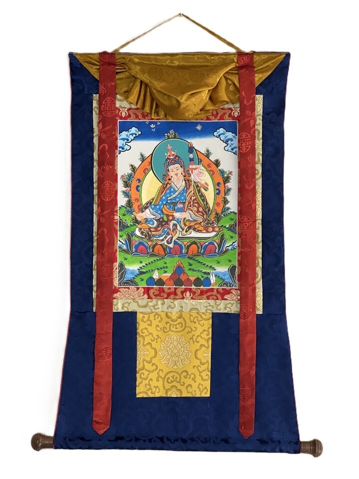 - HAND-PAINTED GURU RINPOCHE PADMASAMBHAVA TIBETAN THANGKA ART WITH SILK BROCADE