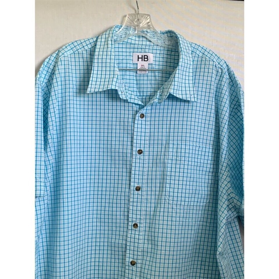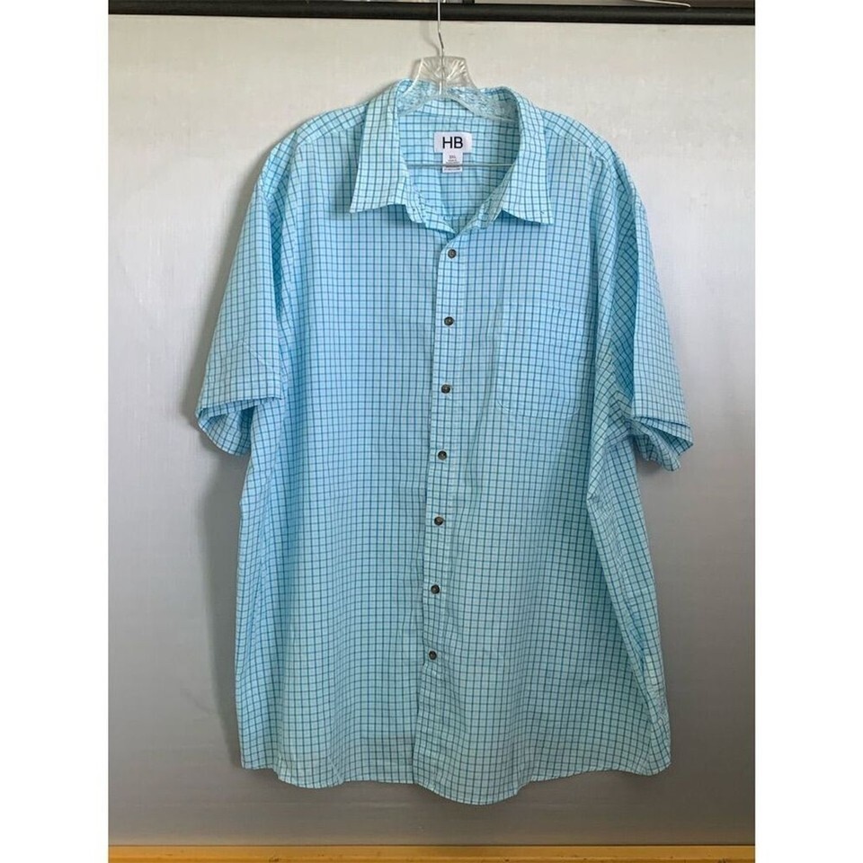 HB Men's 3XL Blue Plaid Short Sleeve Button-Up Shirt Casual