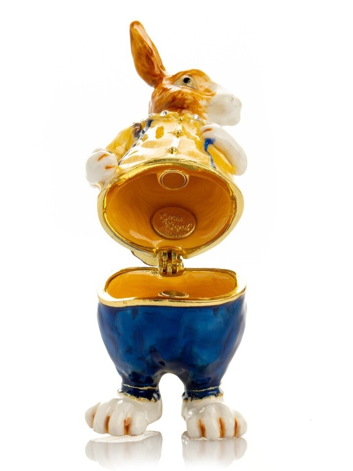 Lapin Keren Kopal portant une boîte a bibelots pour bebe decoree de cristaux autrichiens