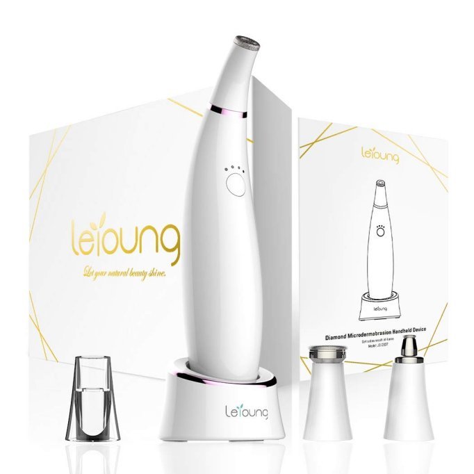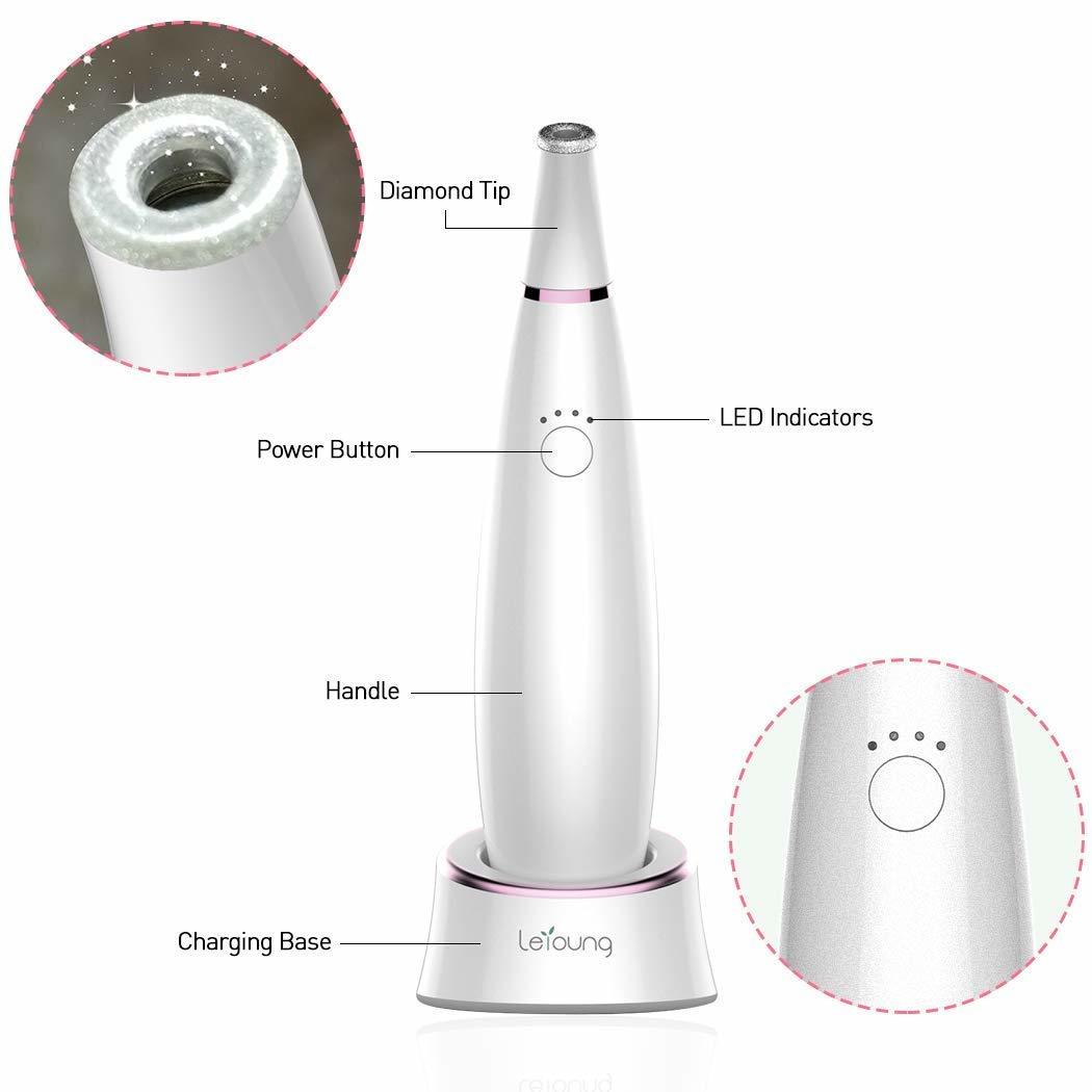 Leyoung Diamond Microdermabrasion Kit works with 3 diamond-tips and 1 clear tips which gently abrades and exfoliates dead skin cells, reveal healthy new skin under the stratum corneum.