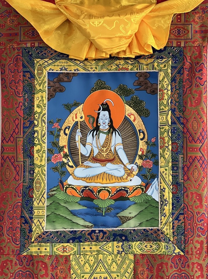 - LORD SHIVA/ SHANKAR/ MAHADEVA ORIGINAL HINDU PAINTING WITH PREMIUM SILK BROCADE