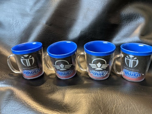 A vendre est un lot d'occasion de 4 1987 Captain Powers Plastic Blue Clear Cups Tug: