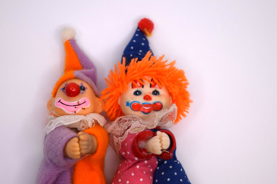 Lot of 2 Vintage Clown Clip On Pencil Huggers 4"