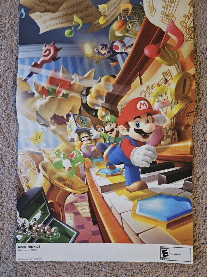 This is a 15.5''x11.5'' two sided poster featuring Mario Party 8 and Mario Party DS. It has a small crease in the middle from being in a magazine. It is in good, unused condition.