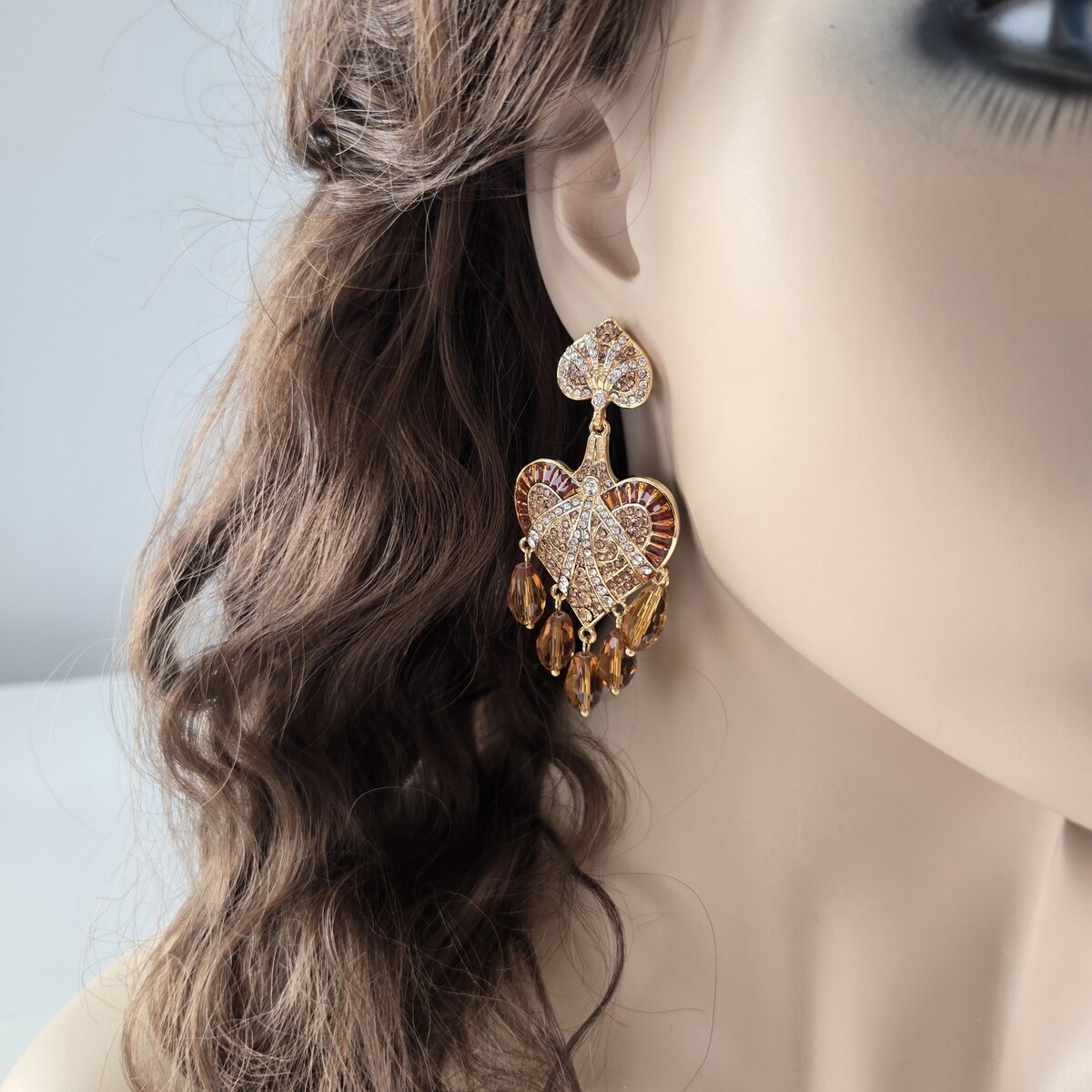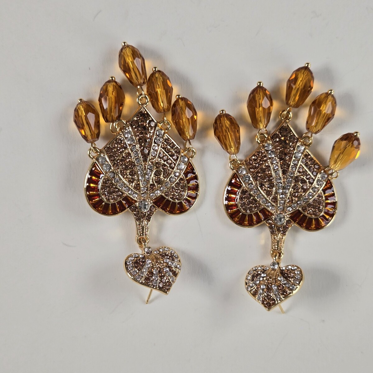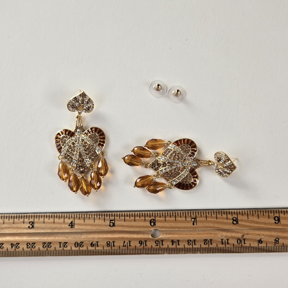 - Monet Amber Rhinestone & Enamel Large Drop Heart Earrings
