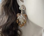 Monet Amber Rhinestone & Enamel Large Drop Heart Earrings